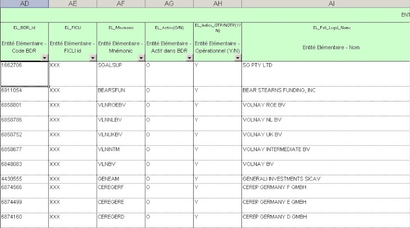 - sur la feuille 1, j'ai de nombreuses données clients, dont la colonne AD reprenant des codes uniques liés à chaque clients.