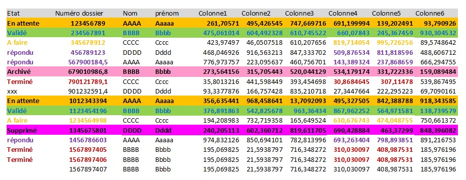 Je souhaiterai une macro qui créerai une mise en forme conditionnelle (dans le tableau "Liste") par rapport aux éléments (et leur mise en forme) de la liste "etat", sachant que ces éléments et leur mise en forme peuvent être modifiés.