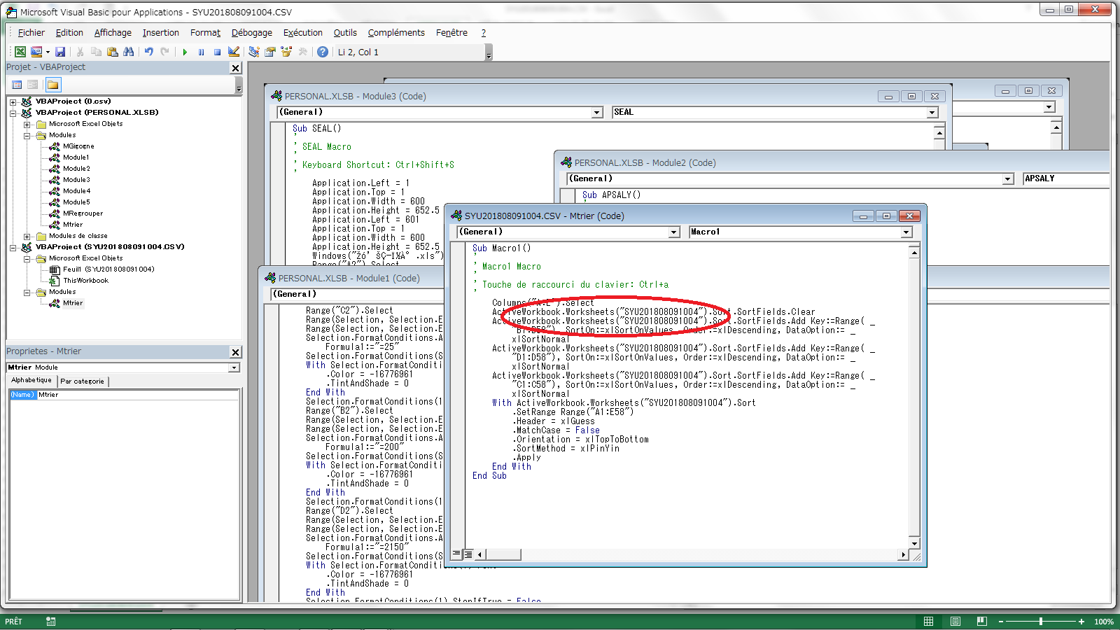 Je vous joint a nouveau le fichier test et mon classeur actuel de macros. (TEST.xlsx/PERSONAL.xlsm)